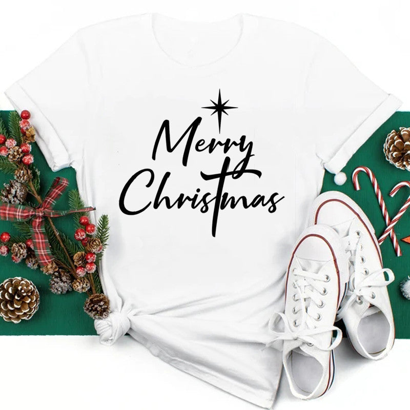 2025 New Year Christmas Plus Size Round Neck Short Sleeve T-shirt